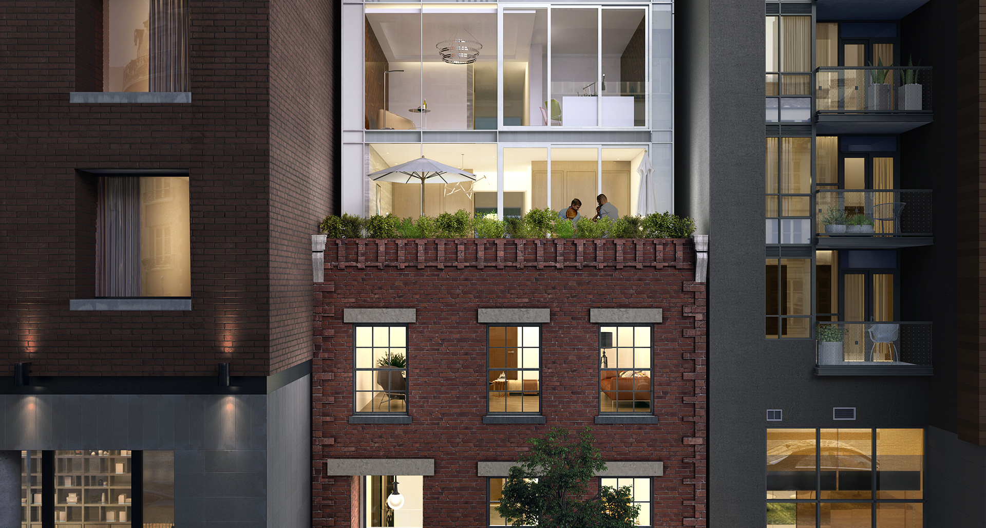 Seamlessly integrating with a heritage building below, an elevated expression of contemporary design rises from a secluded, one-block street.